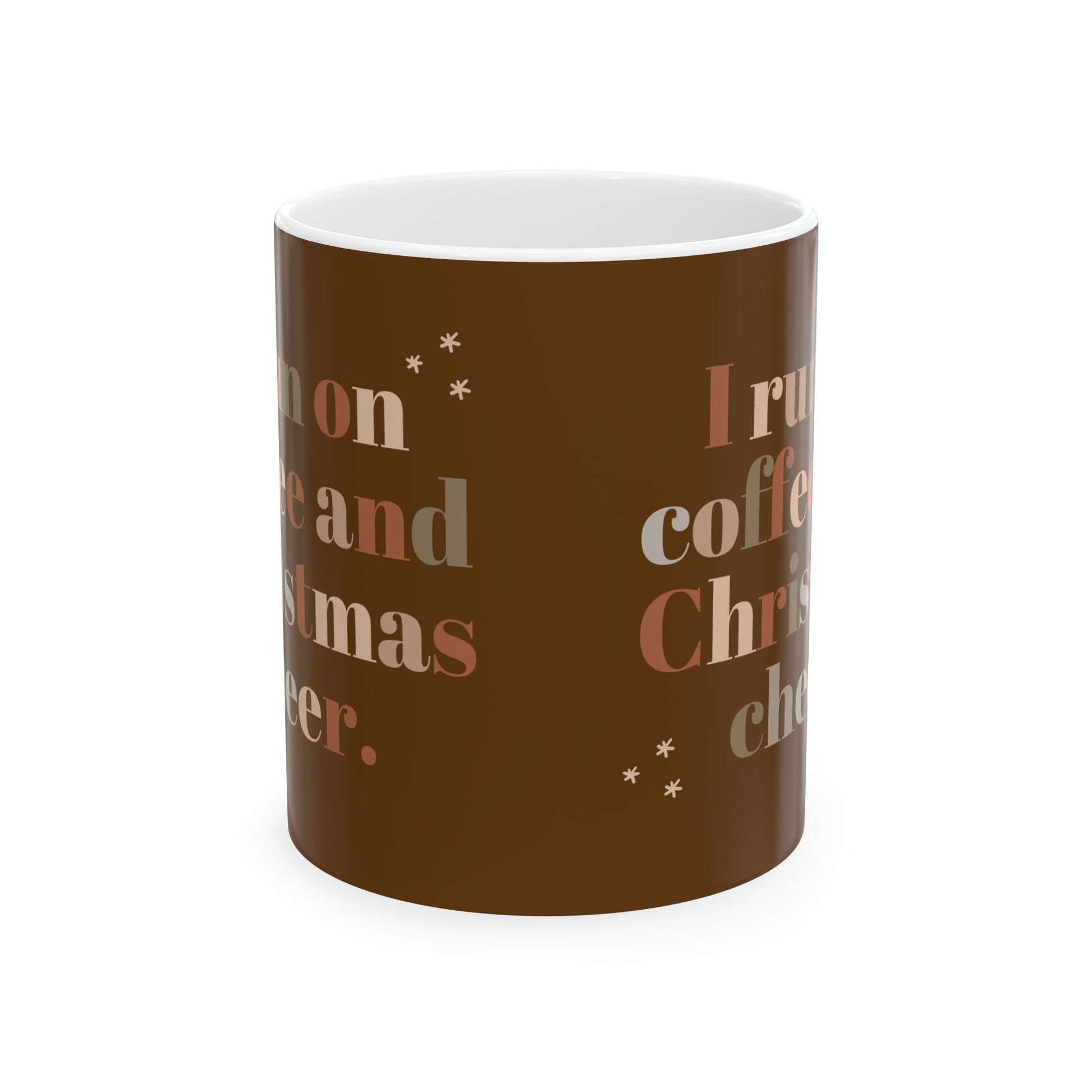 Ceramic Coffee Mug, I Run on Coffee and Christmas Cheer, Holiday Gift, Eco-Friendly, Home Office Decor, Beverage Cup, Gift for Him/Her