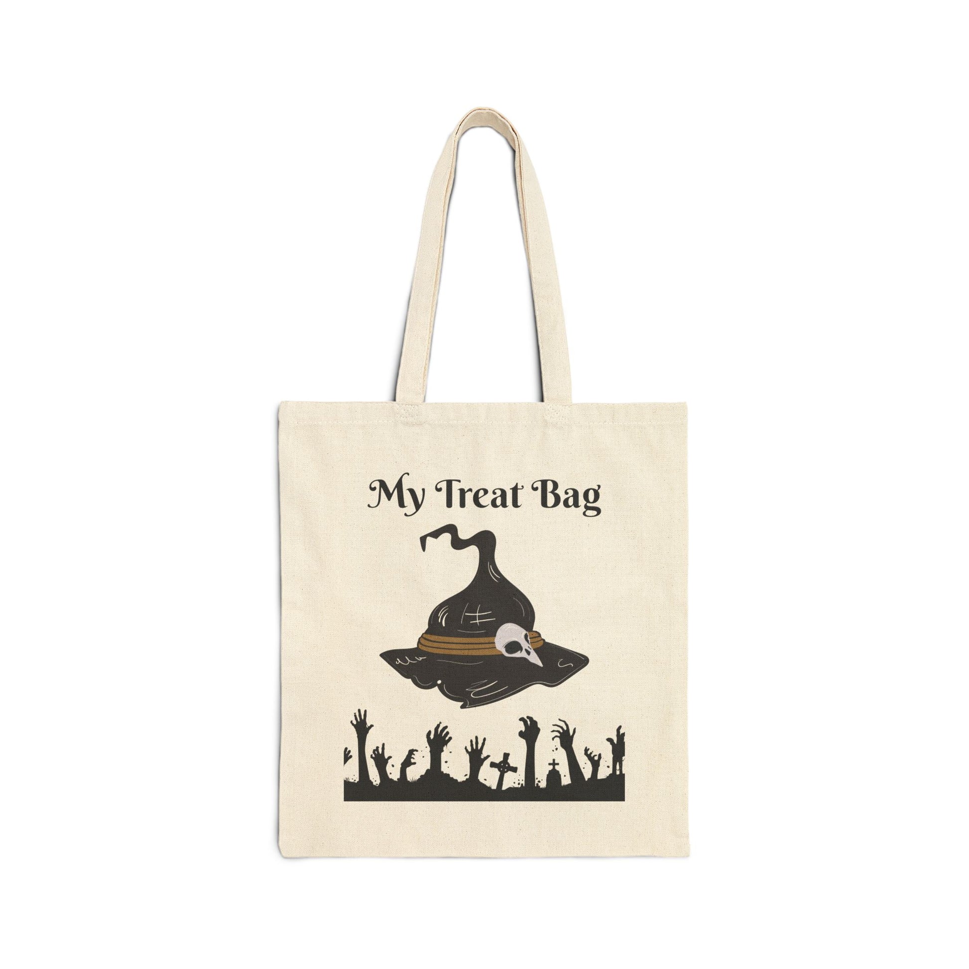 Halloween My Treat Bag Cotton Tote Bag, Eco-Friendly Shopping Bag, Reusable Gift Bag, Halloween Decorations, Treat Bag