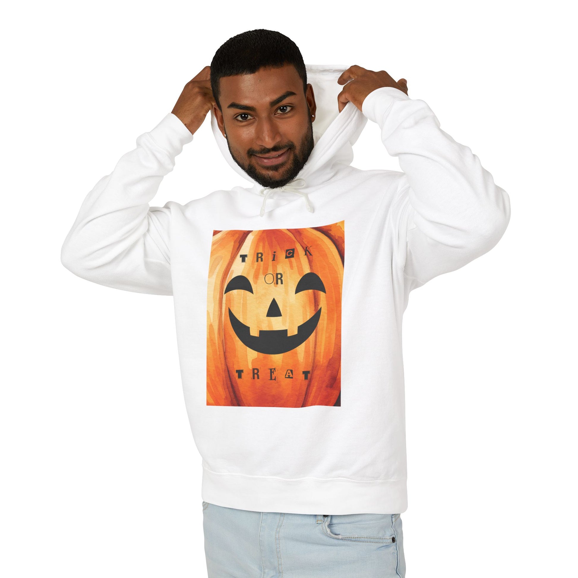 Halloween Pumpkin Hoodie, Unisex Lightweight Hooded Sweatshirt, Cozy Fall Apparel, Trick or Treat Costume