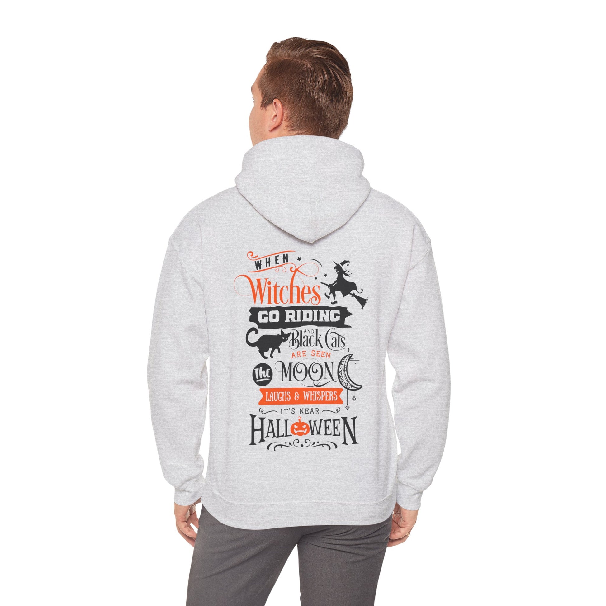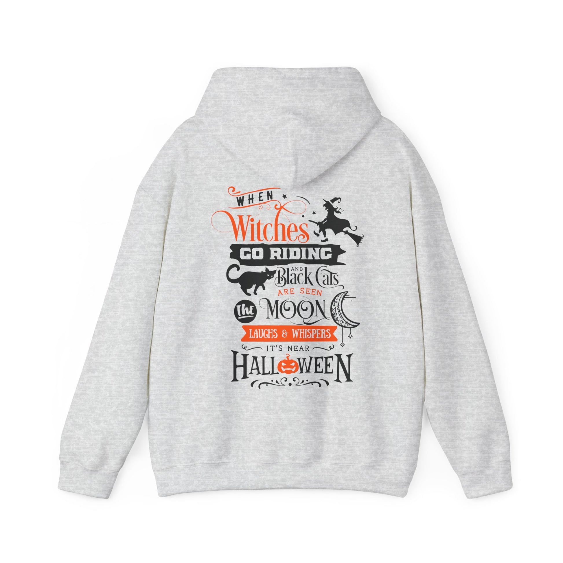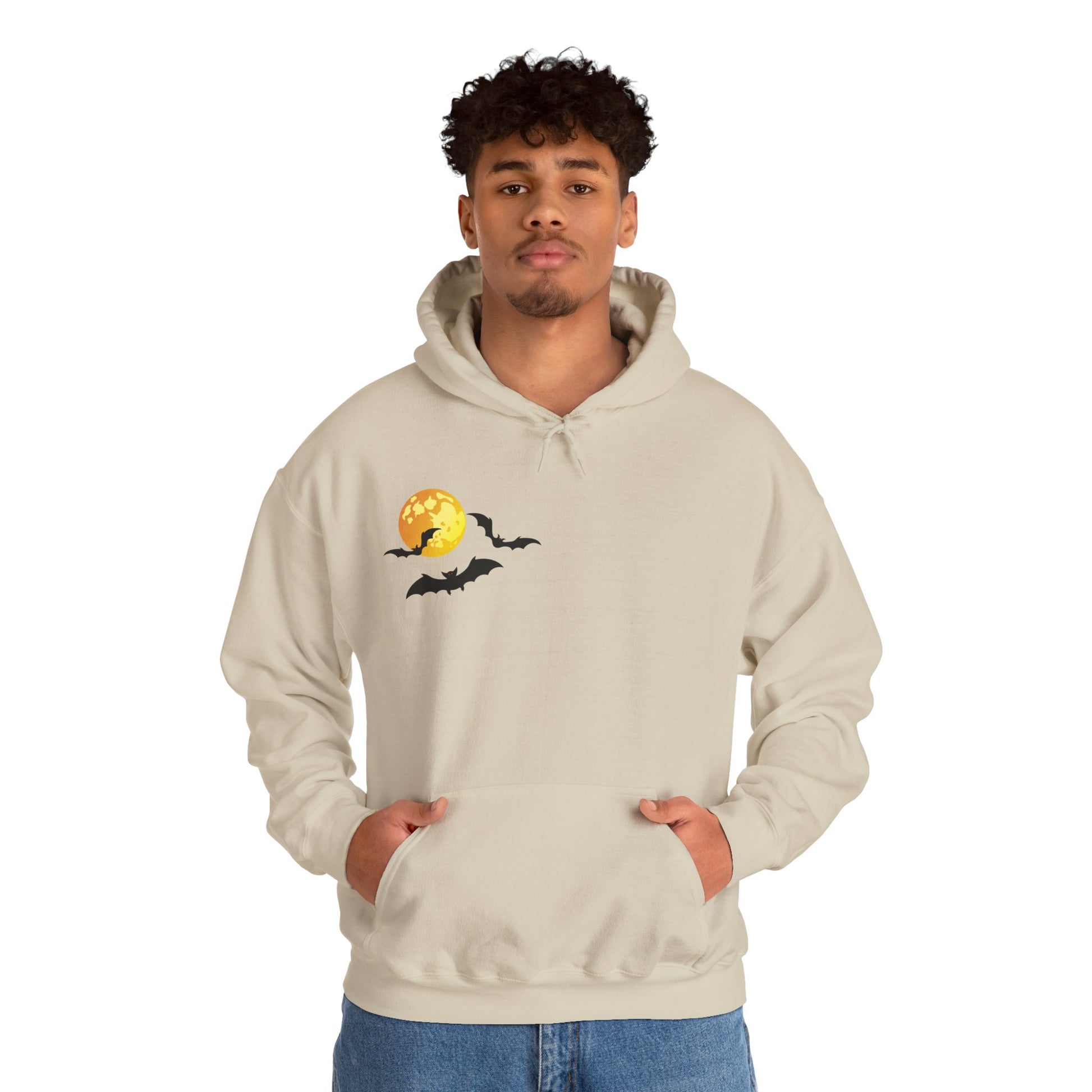Halloween-Themed Unisex Hoodie with Witches and Bats Design, Cozy Sweatshirt for Fall Celebrations, Spooky Season Apparel, Gift Idea