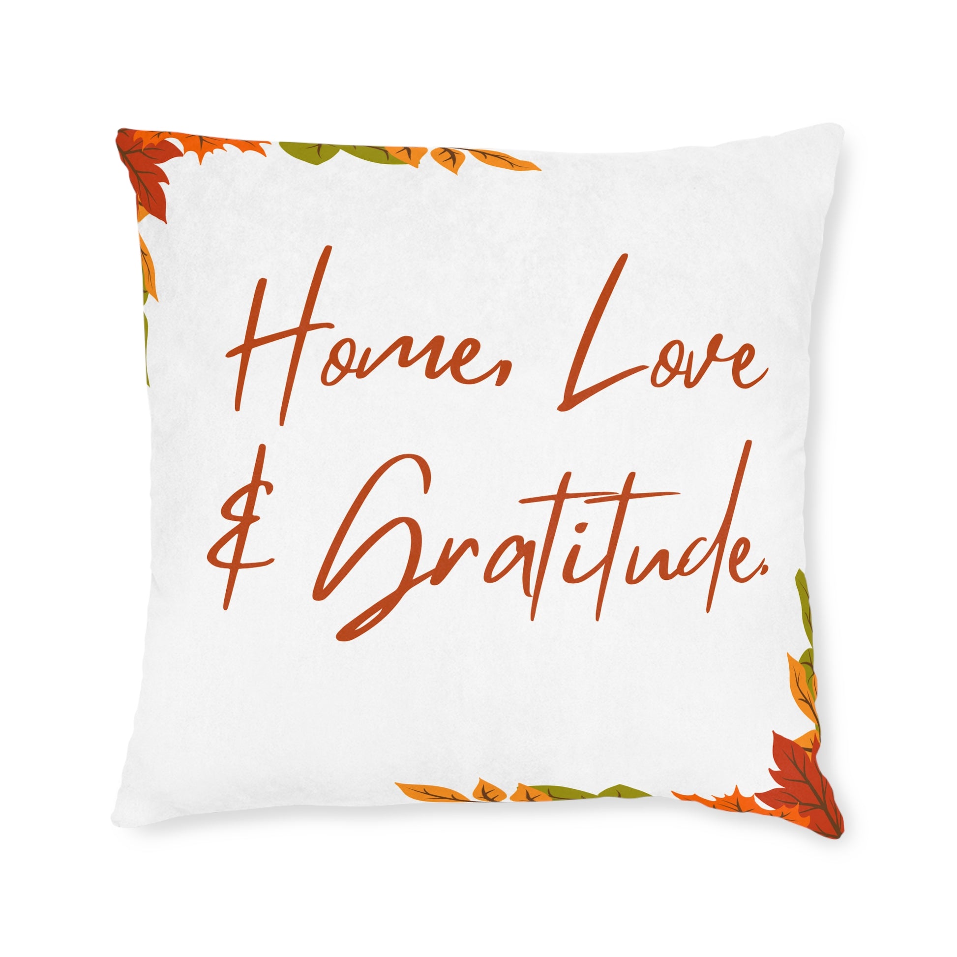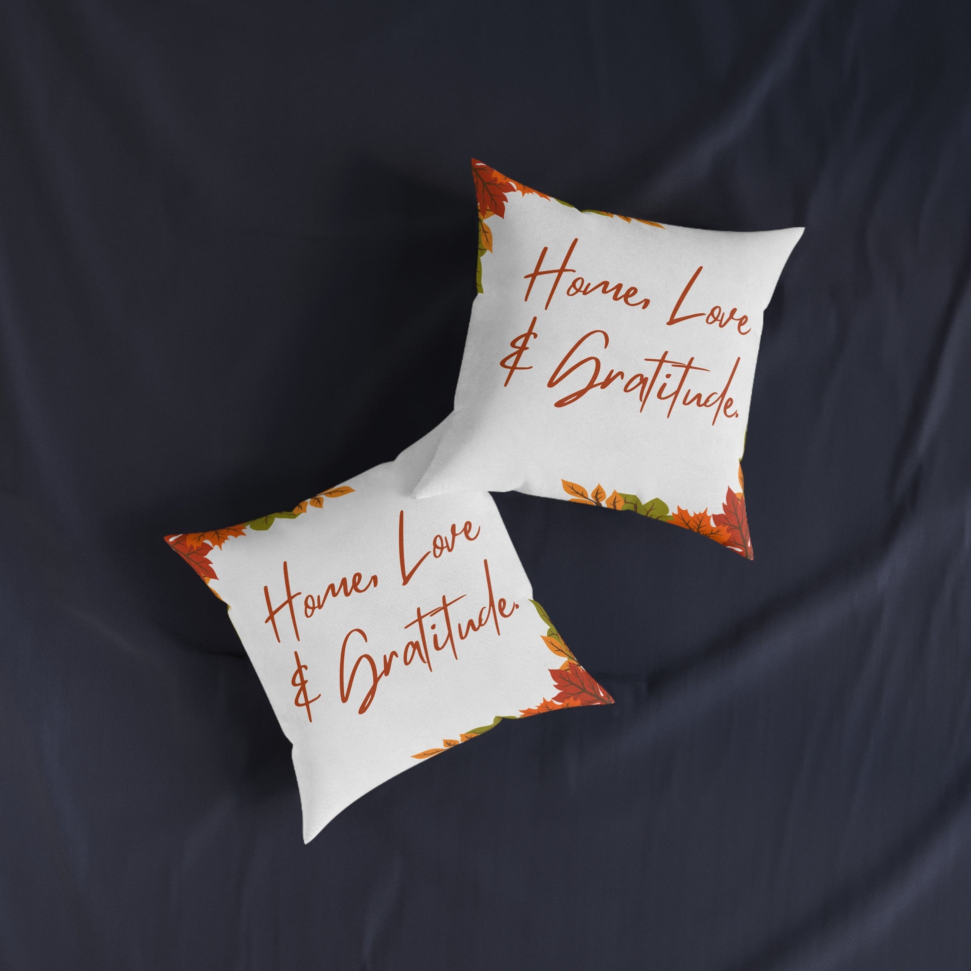 Home Love & Gratitude Square Pillow | Cozy Home Decor, Fall Accent Cushion, Gift for Friends & Family, Autumn Decor
