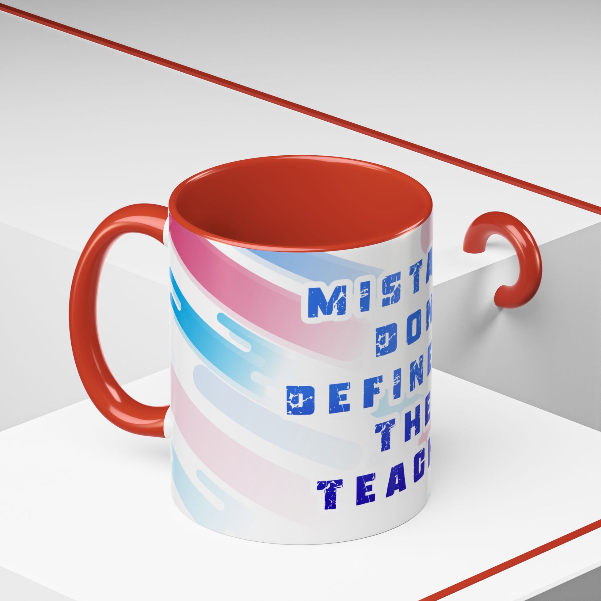 Start each day with a burst of inspiration from this vibrant accent coffee mug. Perfect for holding your favorite brews, this stylish ceramic mug is designed to uplift your spirit and boost your productivity. Its eye-catching color contrast and glossy finish create a striking look that will stand out in any kitchen or office. Ideal for coffee aficionados, students, or anyone who needs a cheerful reminder that "Mistakes Don’t Define Me, They Teach Me." This mug is a wonderful gift for celebrations like birthdays, graduations, or even as a thoughtful workplace gift. Embrace positivity and enjoy your favorite drinks with this unique piece that captures the essence of learning and growth.