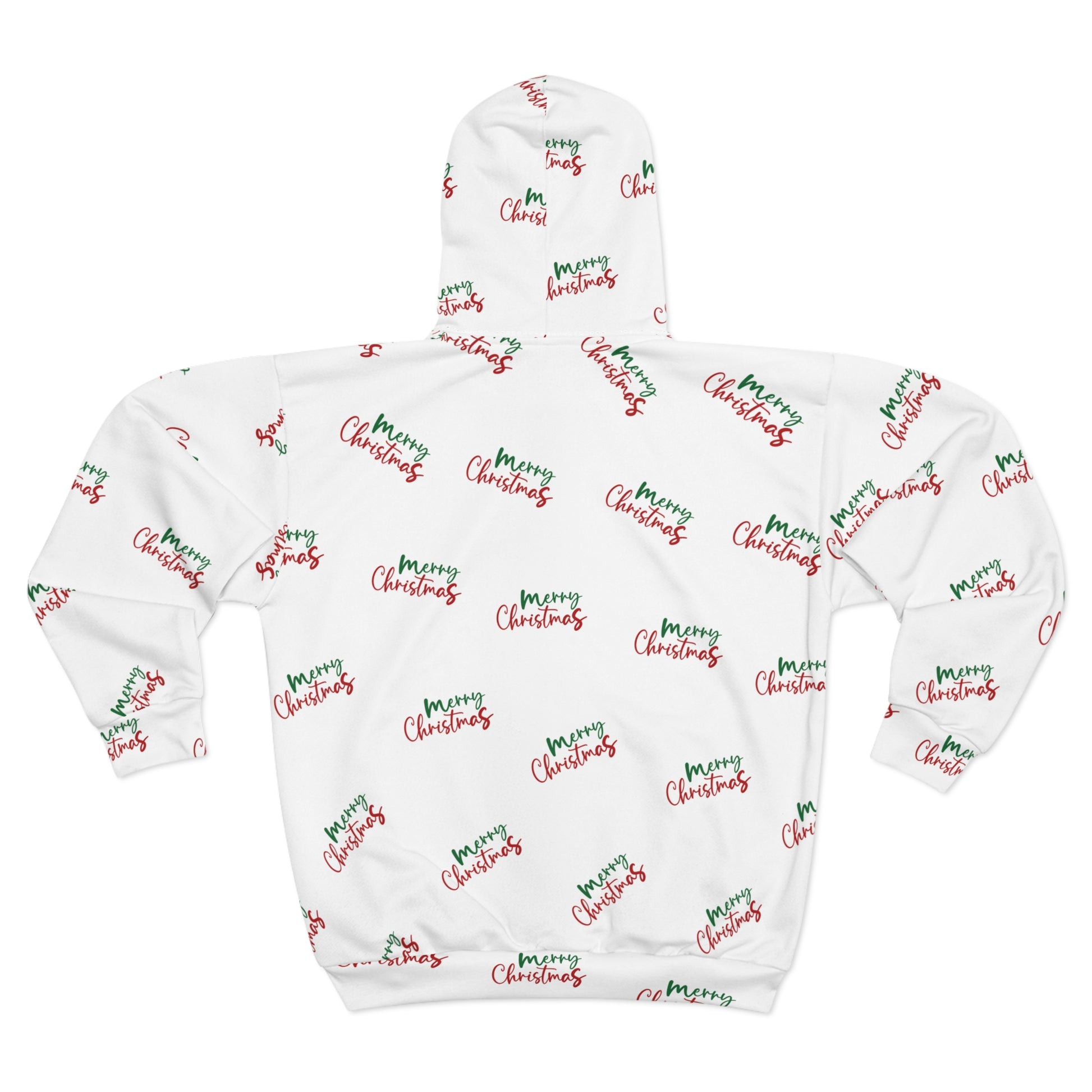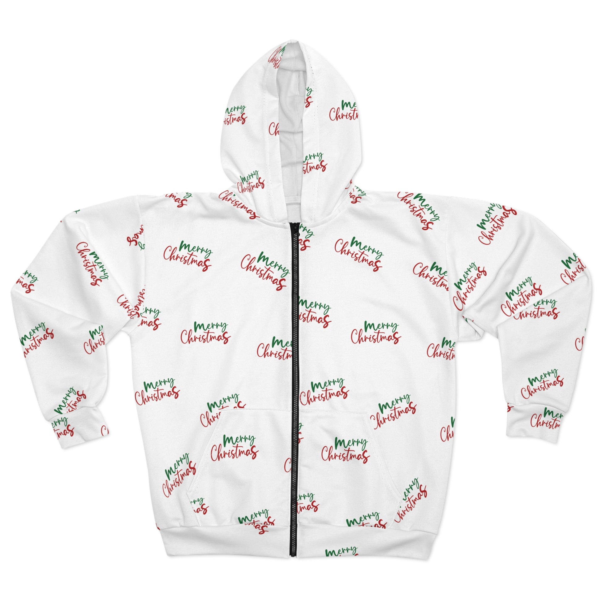 Merry Christmas Unisex Zip Hoodie, Festive Holiday Apparel, Cozy Winter Layer, Gift for Friends and Family, Christmas Outfit