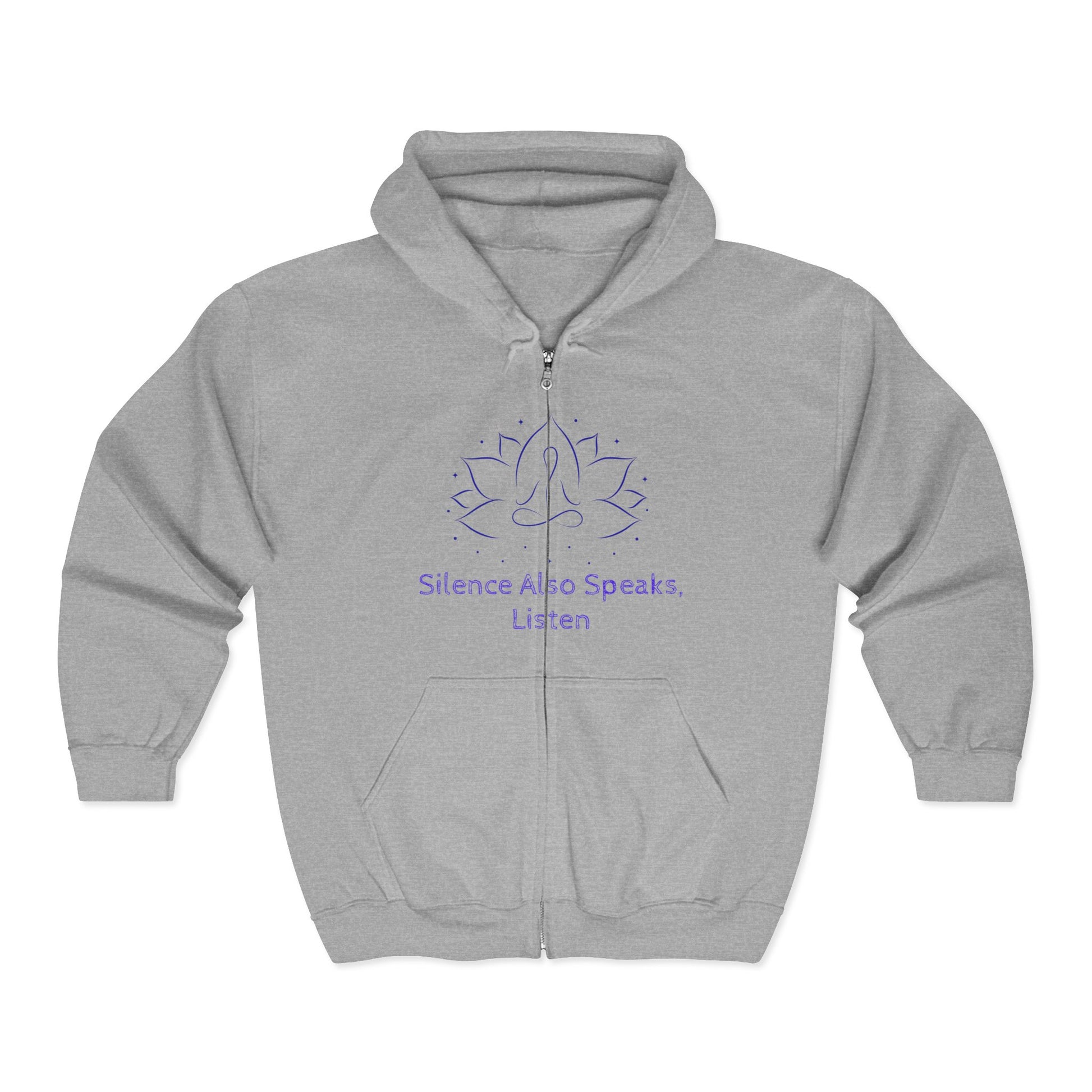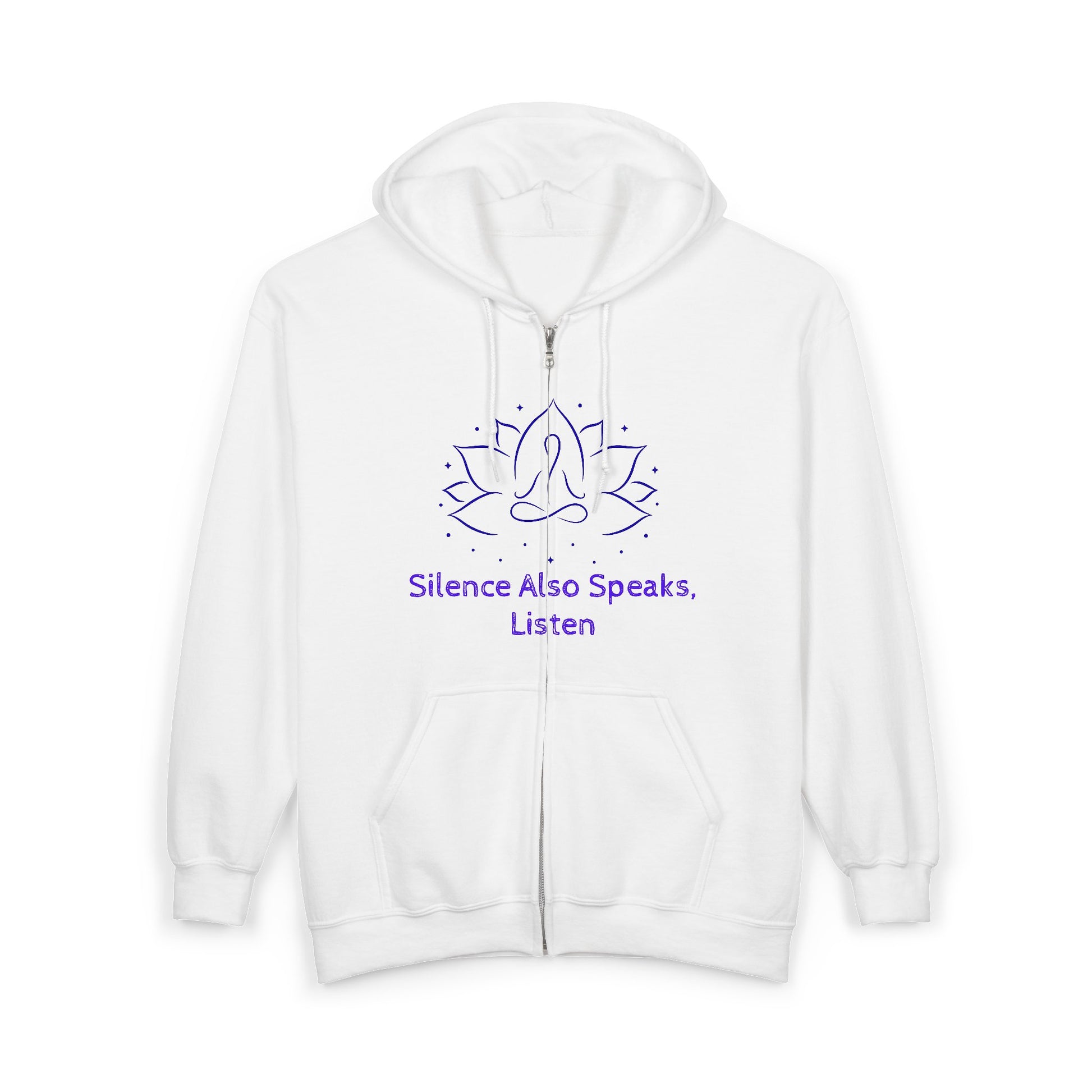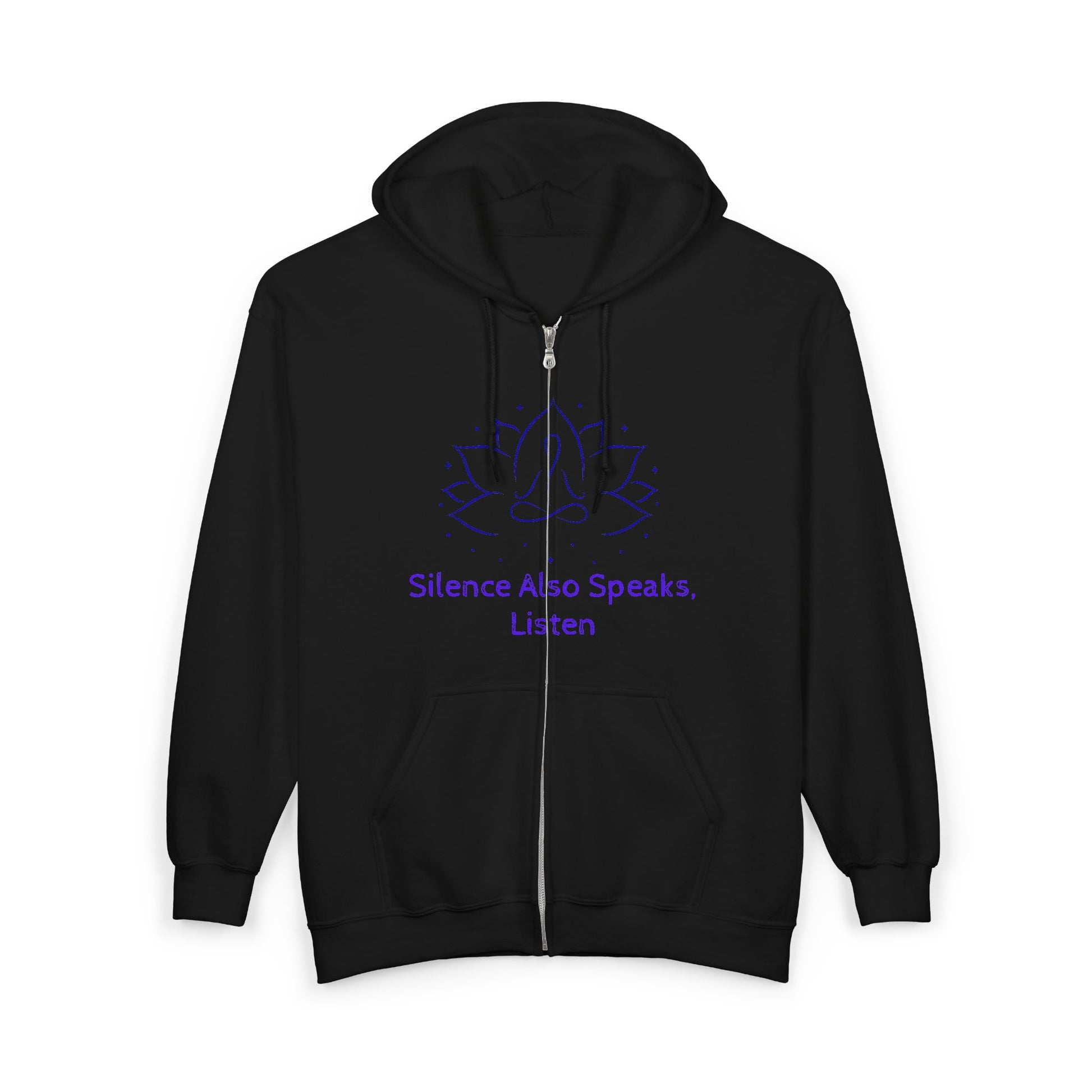 Mindfulness Zip-Up Hoodie with Lotus Design - "Silence Also Speaks, Listen"