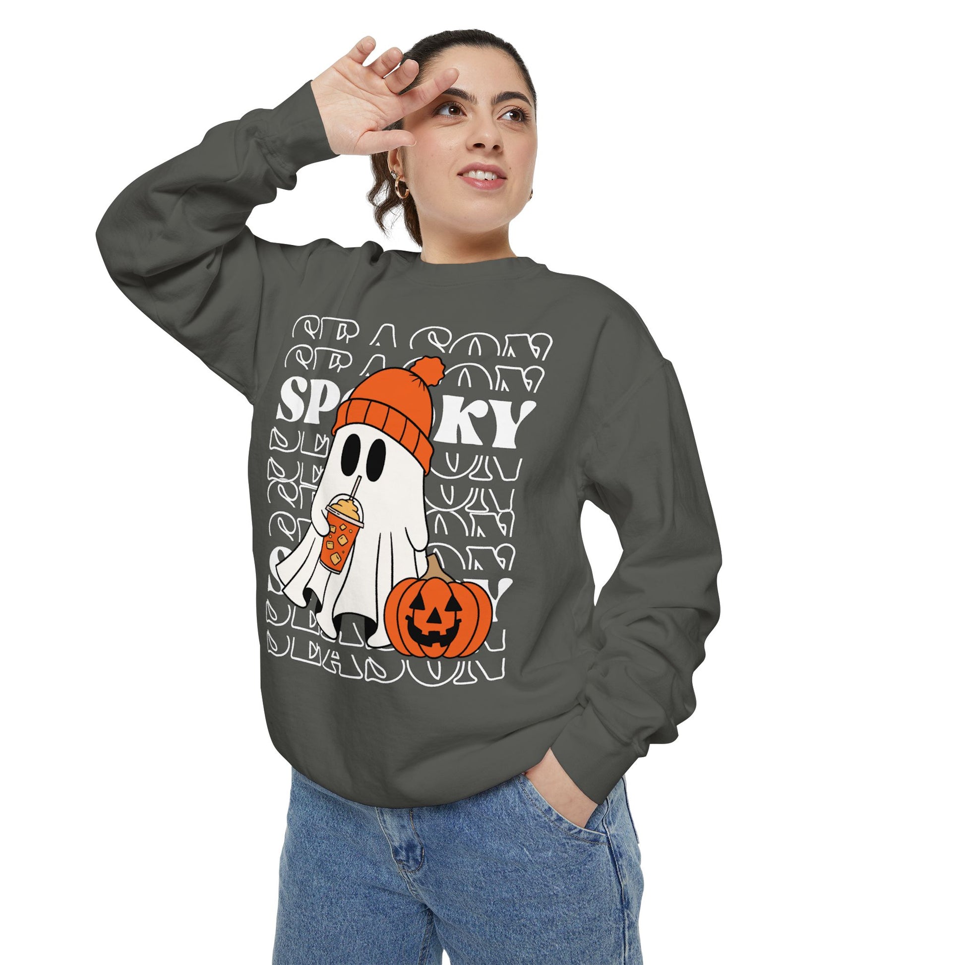 Spooky Season Sweatshirt - Unisex Garment-Dyed Pullover for Halloween and Fall, Cozy Comfort, Perfect Gift for Friends, October Decor,